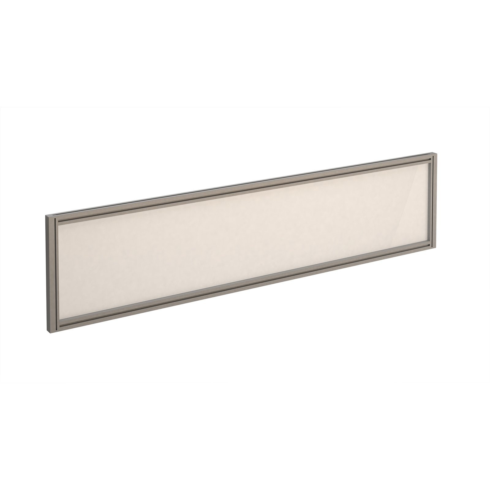 Straight glazed desktop screen 1600mm x 380mm - polar white with silver aluminium frame