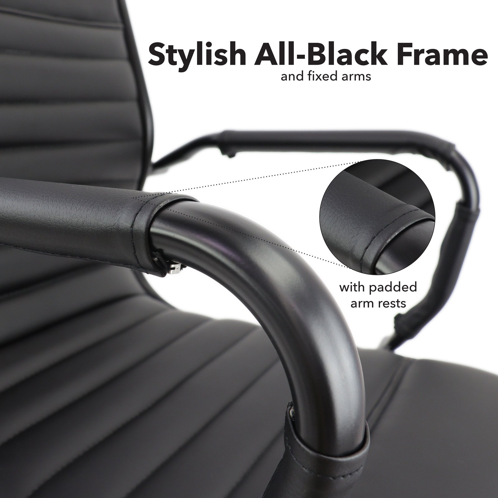 - Black faux leather chair with medium and high back options